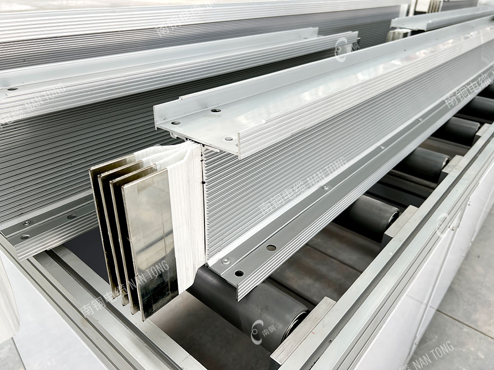 ④接地:铝合金外壳作为保护地线,省去了铁质外壳母线槽单独设立的PE线。铝合金外壳均匀抱在相线四周,与务相尽量靠近目距离相等,电抗相同外壳与单设PE线连接处因长期受腐蚀而产生接触不良,造成接地断续现象等较多的缺点,无论是对短时还是持续的相对地短路故障,这种整体接地技术都是行之有效的,也符合国际电气技术委员会IEC ) 提倡母线槽外壳作为接地线的精神。NT-CMC系列密集型母线槽按国家标准对外壳做了保护导体试验,完全符合GB/T7251.6及IEC439-I标准,提高了安全更降低了成本。